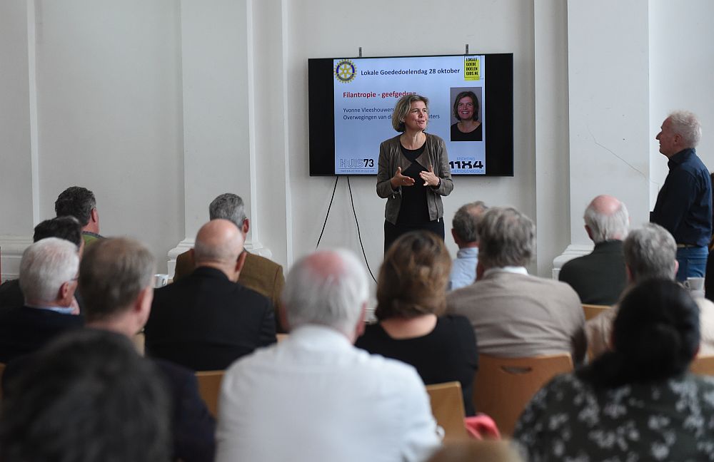 Nan van Schendel (Huis73) lichtte toe welke veranderingen het komend jaar te gebeuren staan in en rond de panden van Huis73. Lotte Landsheer en Frida Rouppe van der Voort (Cor Unum), Ellen Blijlevens (Huiskamer Bij Katrien), Lodie Hofland (Voedselbank) en Huib Smelt (Dierentehuis) vertelden over hun bijzondere geschiedenissen en ervaringen in het werven van fondsen en donaties. De vijf organisaties staan voor forse uitdagingen: Huis73 gaat groots verbouwen, Cor Unum heeft een grote nieuwe oven nodig, Huiskamer Bij Katrien verhuist opnieuw, de Voedselbank begint met een nieuw concept én gaat verhuizen en het Dierentehuis is na een moeilijke periode bezig met het herwinnen en bestendigen van vertrouwen. Bij al deze uitdagingen zijn donaties en schenkingen van harte welkom.